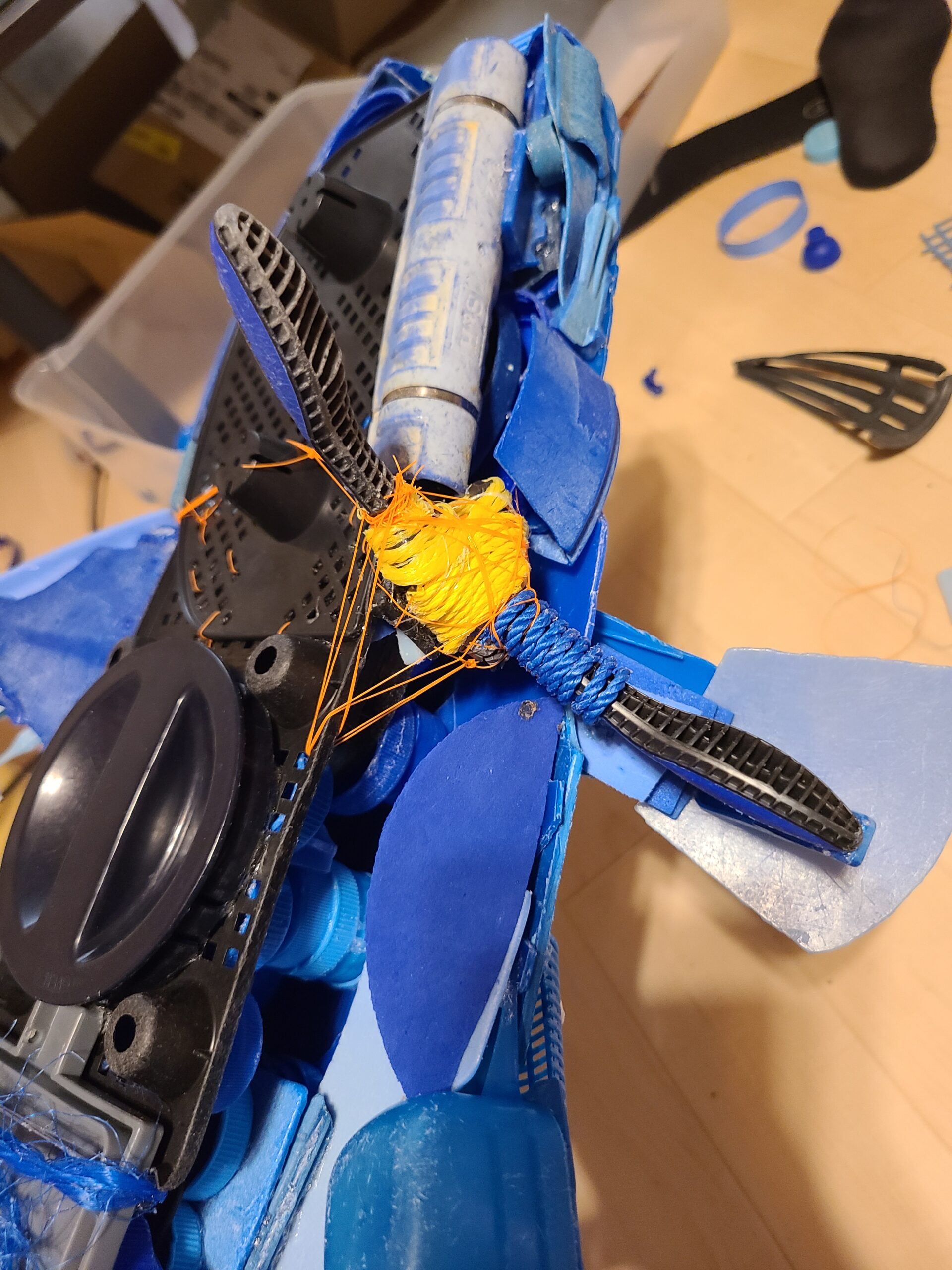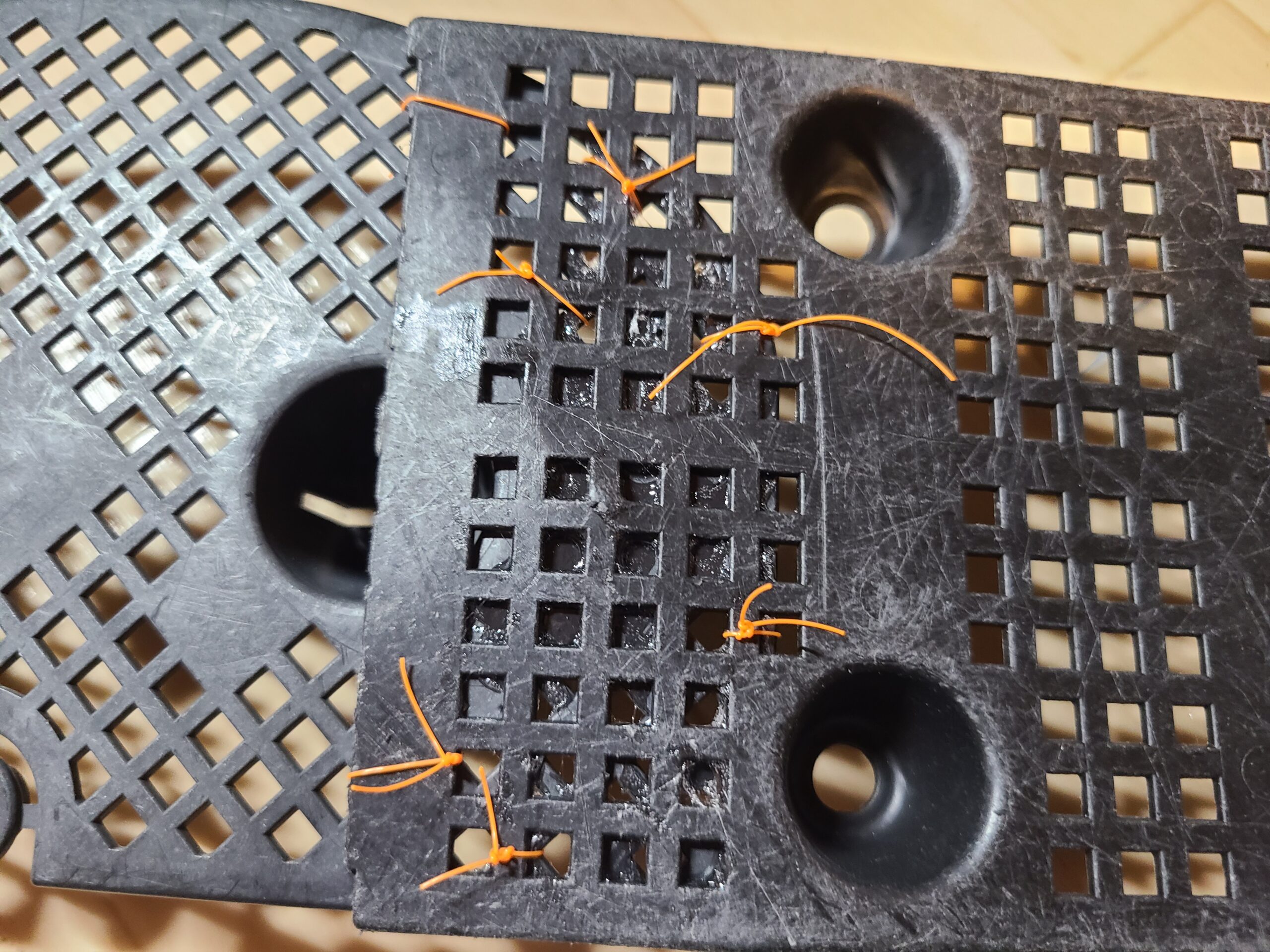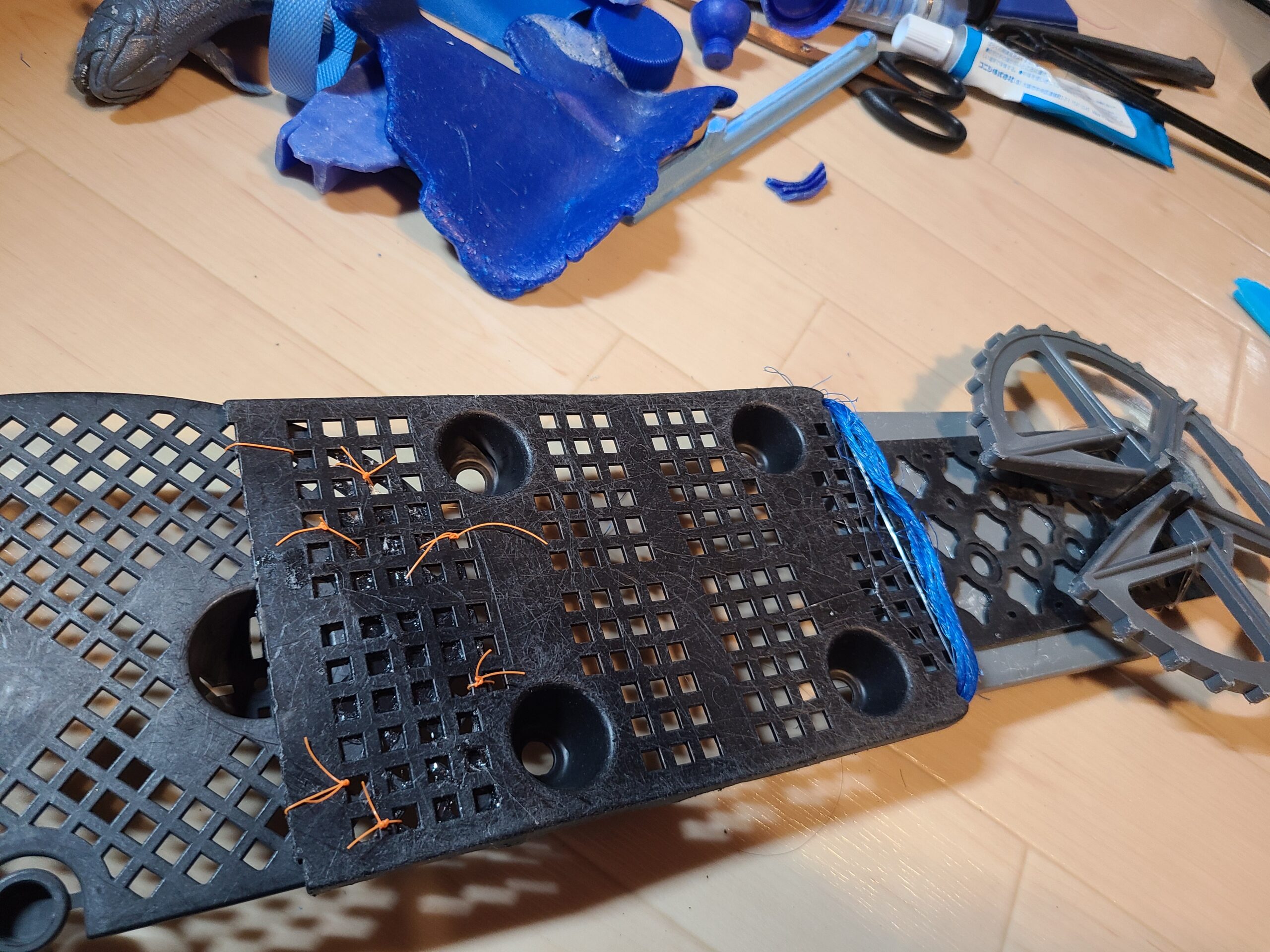 ボンドのみでの接着は不安だったので、拾ってきた釣糸で固定🔧